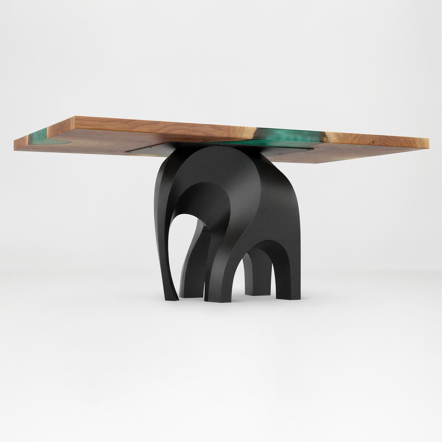 Moreover, that “elephant” shape of the Elephas table base metal quality really comes through when you see it in person. It's a good example of biomorphic design that can handle up to 1,000 lbs, where furniture takes on the organic characteristics of living things rather than defaulting to straight lines and sharp angles.