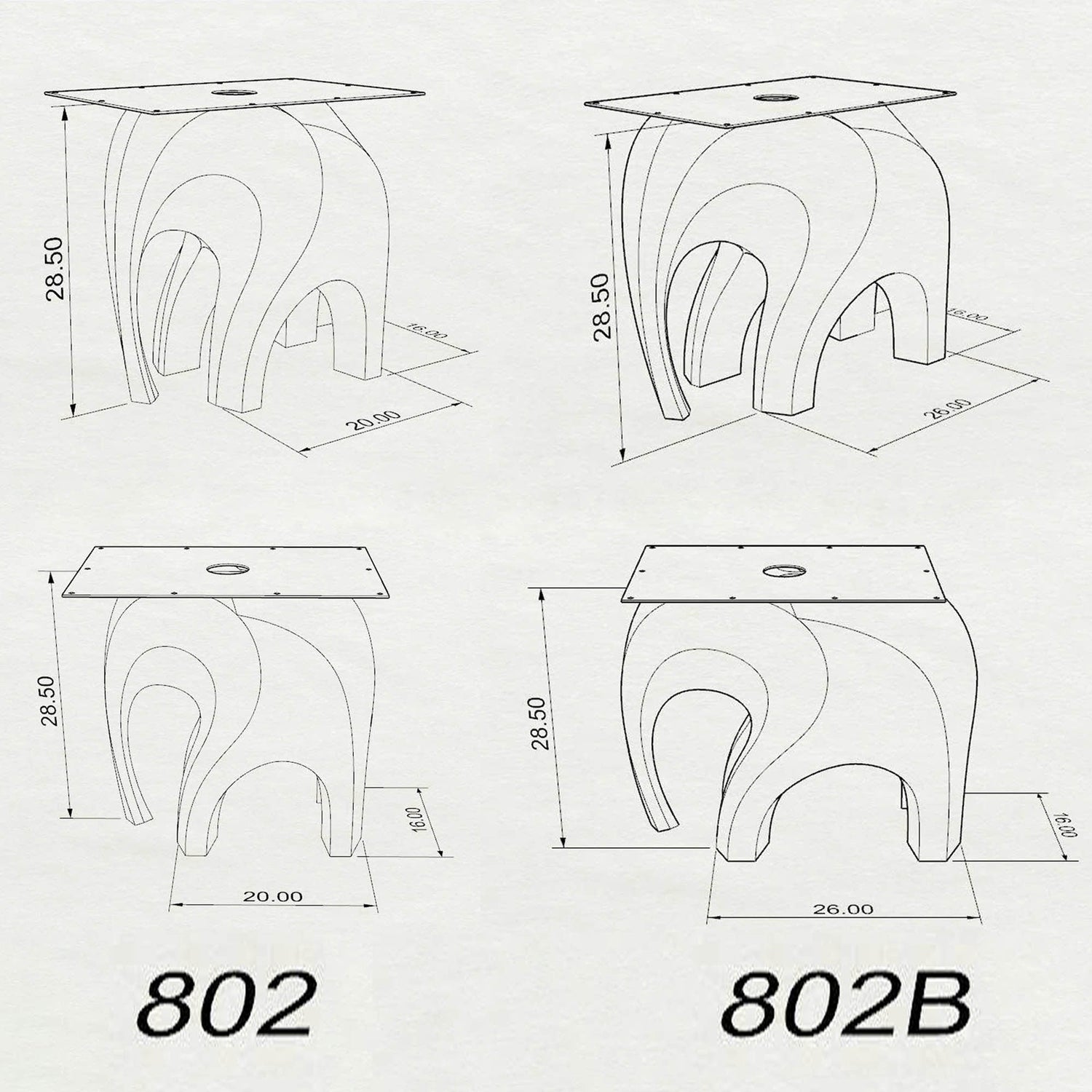 Metal Table Base 802 | 802B Elephas 28.5" H: Artful Shape, Steady Support